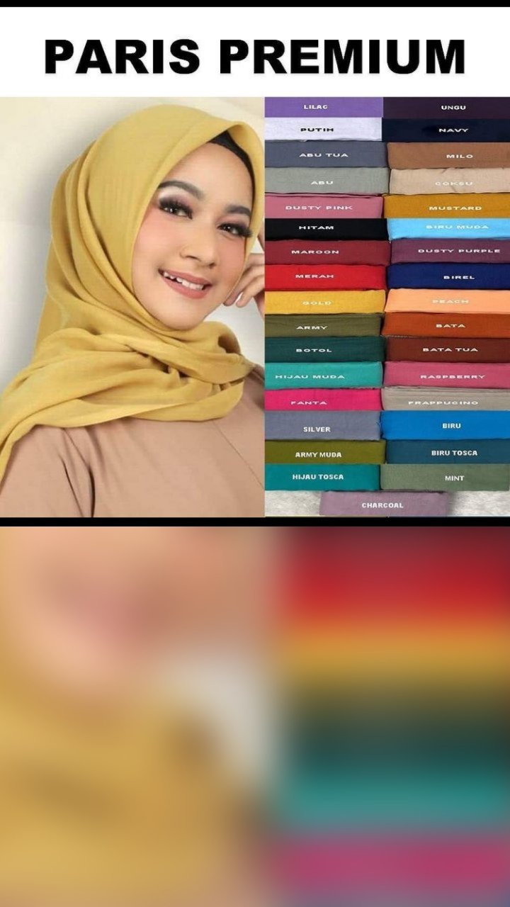 Jilbab segi4 Paris premiumnya KK punya banyak varian warna yang cantik* untuk harga murah aja ya KK 20k